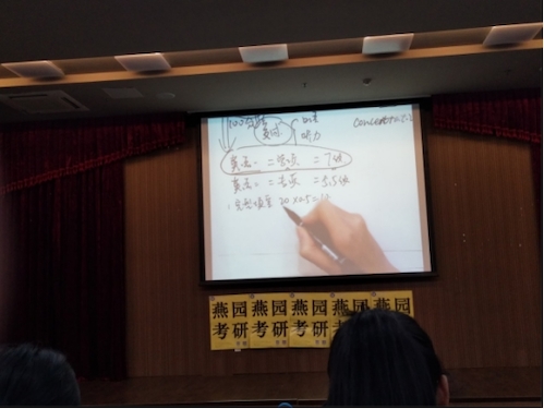 讲座开始前,“燕园教育”的负责人先以随机抽选的方式选了几名同学每人免费送了一套与考研相关的书,激发了同学们的热情。讲座开始后,首先,李老师把考研英语卷的大致模块用手写投影的方式清晰地呈现在大家的面前,并与大学英语四六级做了对比,突出了考研英语的特殊性。接着,她逐一梳理了各个模块并指出各模块的注意事项,给我们了许多经验性的指导与提示。最后,李老师重点讲解了记忆单词的常见误区和有效解决方法,并结合自身经历详细地给大家分享了记忆单词的方法。