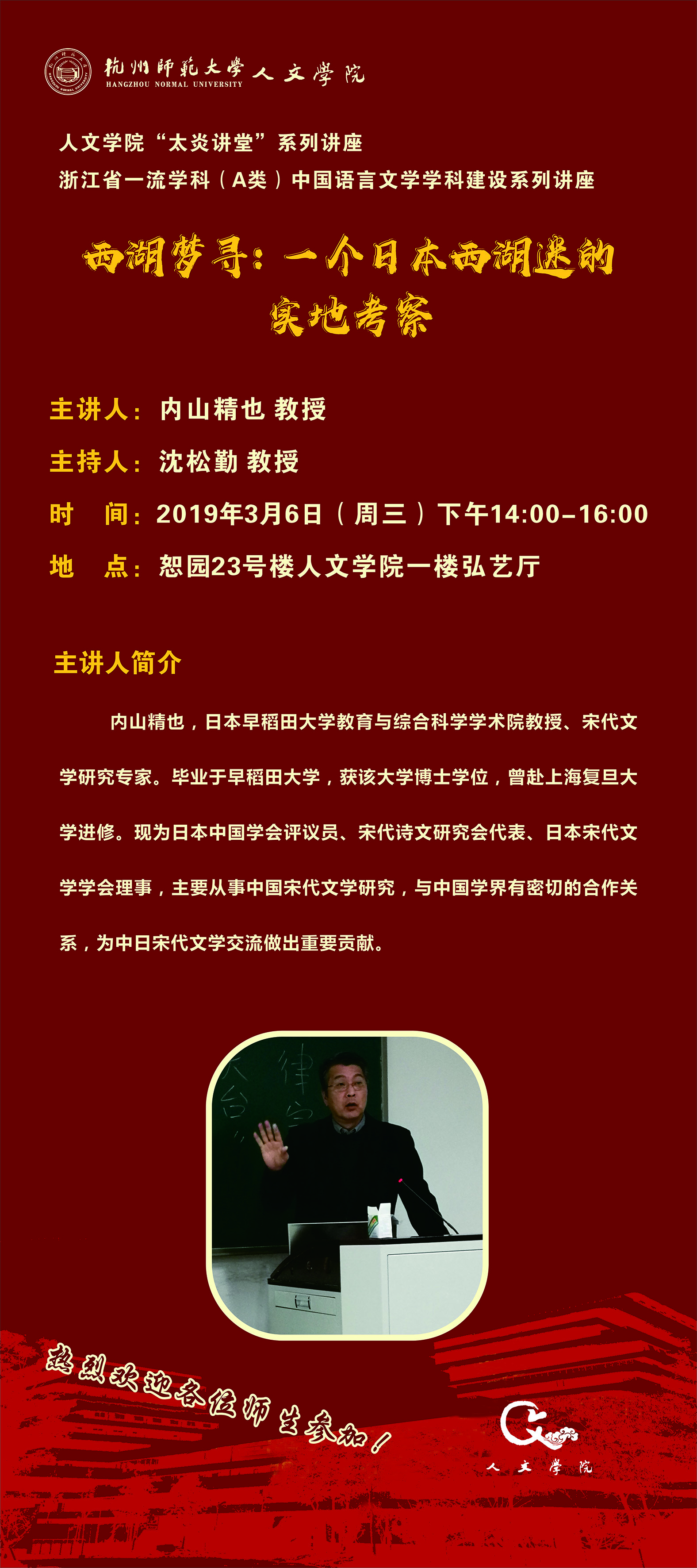 内山精也,日本早稻田大学教育与综合科学学术院教授、宋代文学研究专家。毕业于早稻田大学,获该大学博士学位,曾赴上海复旦大学进修。现为日本中国学会评议员、宋代诗文研究会代表、日本宋代文学学会理事,主要从事中国宋代文学研究,与中国学界有密切的合作关系,为中日宋代文学交流做出重要贡献。