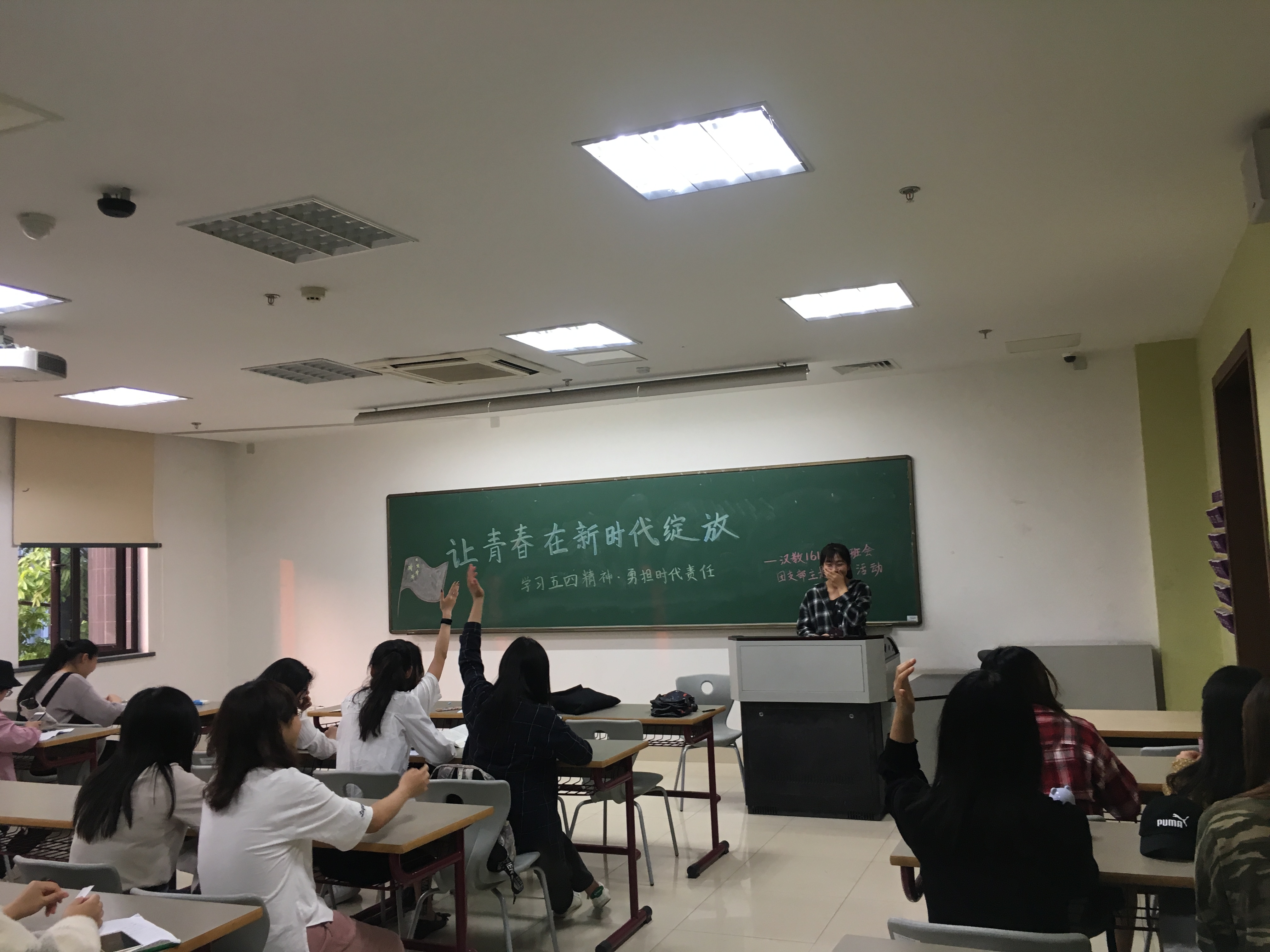 5月10日下午,汉教161班按计划于恕园12号楼206室举行了“学习五四精神,勇担时代责任”主题班会活动。班会筹备过程中,以班长为代表的全体班委积极组织、策划,围绕“五四精神”主题制订了此次班会方案,班级同学认真对待、积极配合和响应号召,在全体同学的共同努力下,此次班会取得圆满成功。