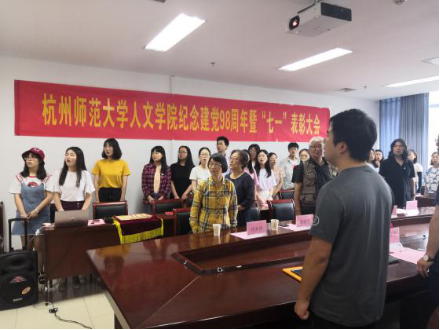 参加大会的领导和老师还有学院副院长刘正平、离退休党支部成立老师、应守岩老师、段晓平老师及相水珍老师四位老党员同志代表、学院中文系教授黄岳杰以及学院学生党支部书记傅培恩、陈晓玲。本科生第三党支部书记孔祥亮主持会议。学院党委委员、副院长刘正平代表学院党委在大会上宣读了表彰文件。