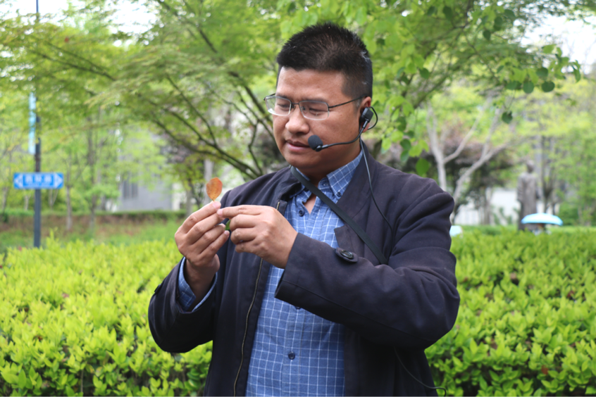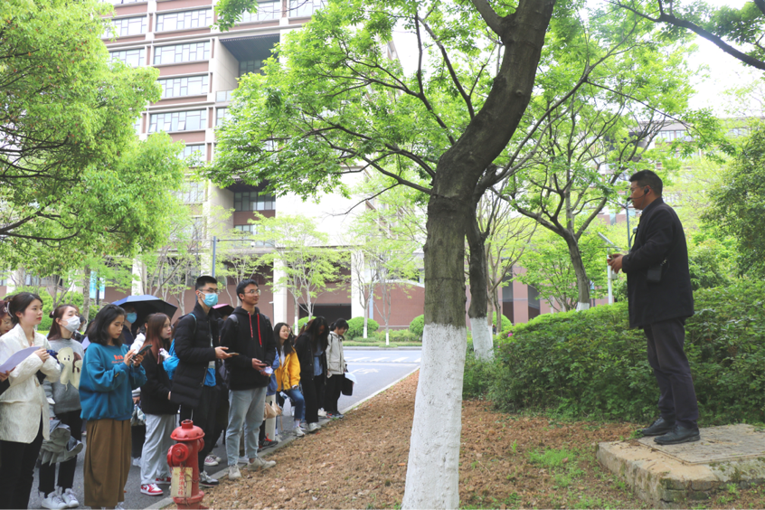 活动中,园林花卉专家、仓前校区物业中心赵小进老师带领av视频 学生辨认校园中的花木。漫步在A区校园中,赵小进老师耐心的向学生们介绍种种花木,并与学生积极互动。详细介绍了杭州师范大学的网红树无患子,讲述了木兰与玉兰的差别,述说了多种花木的开花时间及养护方法。