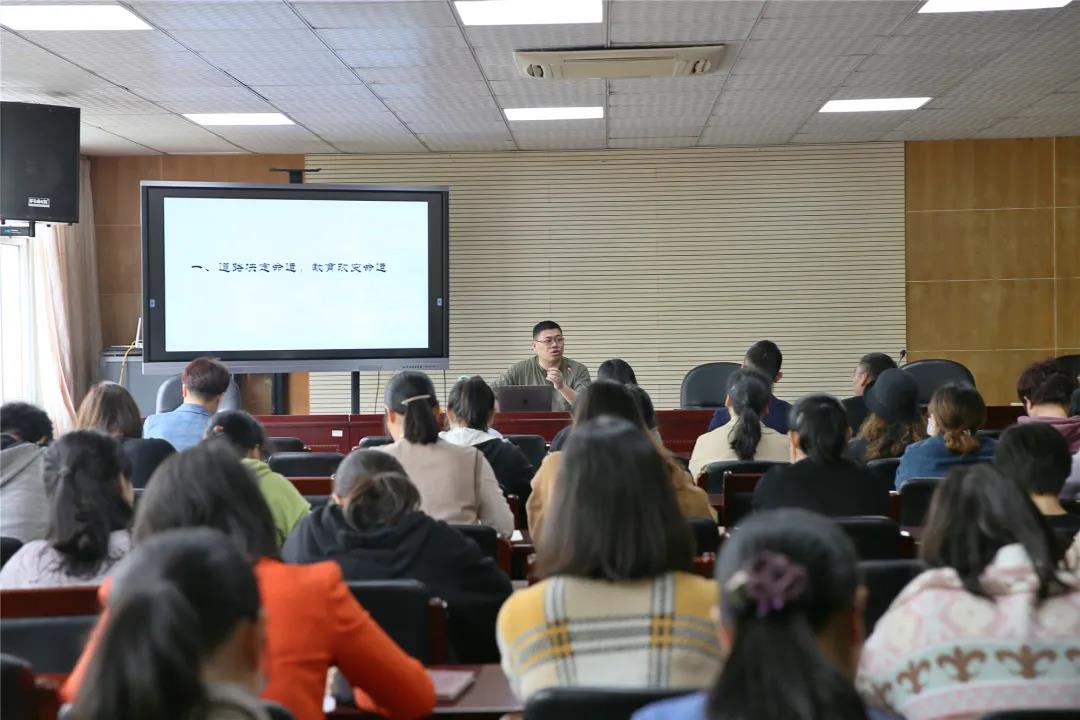 杭州师范大学历史系主任、教授周东华以《衙前农村小学校的历史地位》为题,从中国共产党创建的历史背景娓娓道来,阐述了衙前农村小学在党教育史上的重要意义。引经据典,学校在创办之初即有关于教学内容、教学方式、教学管理等方面科学地定位和设计,为党领导下的第一个农民斗争浪潮的掀起创造了条件。周教授以历史的视角阐明了教育和人的命运、国家命运是息息相关的联系,让参与学习的老师们接受了一次历史的洗礼,汲取奋进力量。