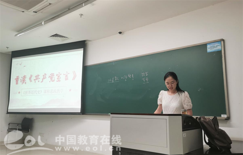 该校av视频 历史系2019级的朱辉煌同学对搜集不同译本的《共产党宣言》进行比较的要求记忆深刻。她说:“和单纯了解《共产党宣言》的内容相比较,自己去搜集各种版本的《共产党宣言》,更能感受到马克思主义在中国的发展历程。在搜集的过程中,我切切实实地感觉到了共产主义对中国的影响。”傅静一创同学也说:“上完周老师的课后我有了很深的体会。周老师把党史融入专业课的做法既加深了我们对世界近代史的理解,也提升了我们对中国共产党的认识,干货满满。”