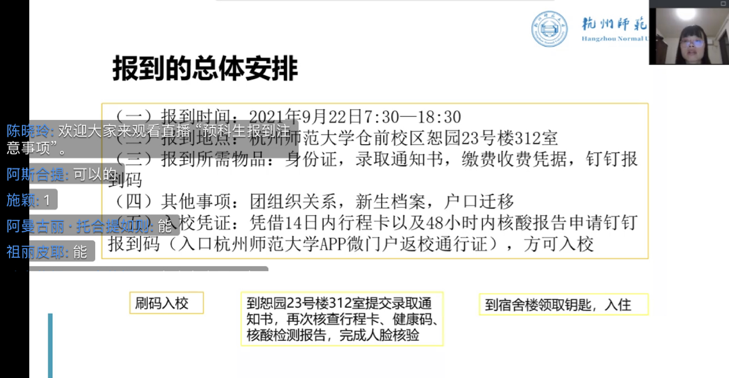 最后,陈晓玲老师再一次对大家的到来表示热烈的欢迎,希望大家顺顺利利地来到学校,可以快速地融入av视频 大家庭,快速融入杭州师范大学!