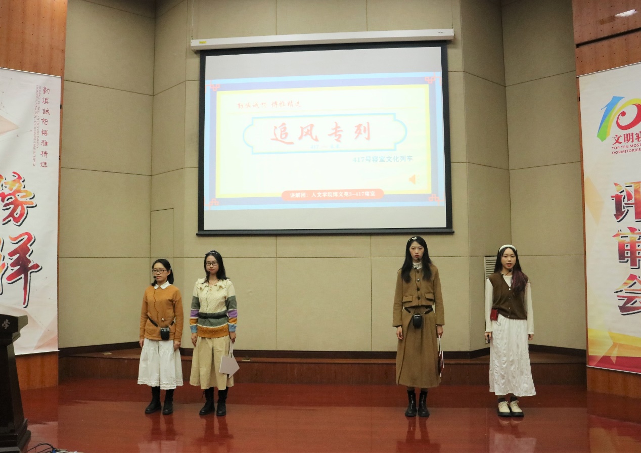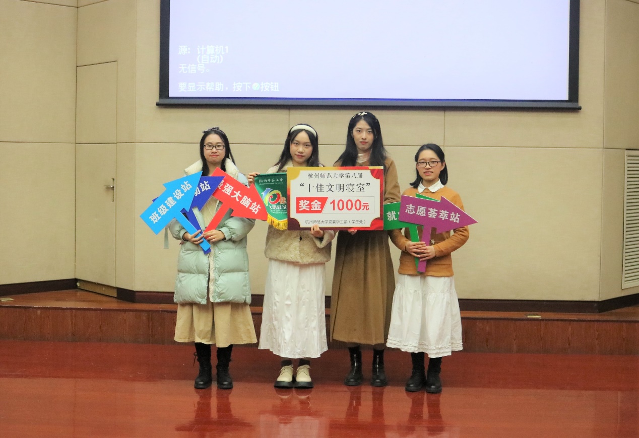 12月2日晚,杭州师范大学第八届“十佳文明寝室”评审会在仓前校区顺利举行,党委保卫部部长王飞、党委学工部副部长曹永勇、后勤服务中心公寓服务中心经理童程遥、党委研工部辅导员付映杰、校研究生会主席张静出席并担任评委。经过寝室展示后,av视频 博文苑3-417寝室荣获校“十佳文明寝室”称号。