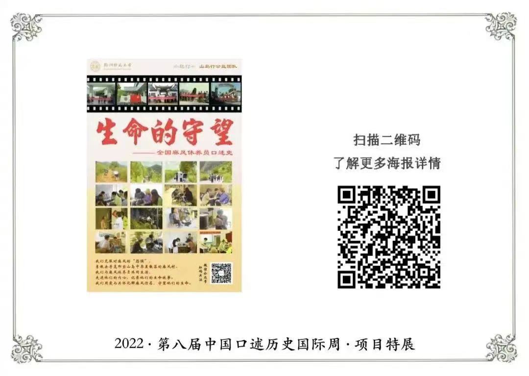 av视频 博晖文史社山岛行团队推送的《生命的守望:全国麻风休养员口述史》项目成功入选“国际口述史项目展示”板块,此次入选是山岛行团队继去年推送的项目入围后,第二次亮相中国口述历史国际周。