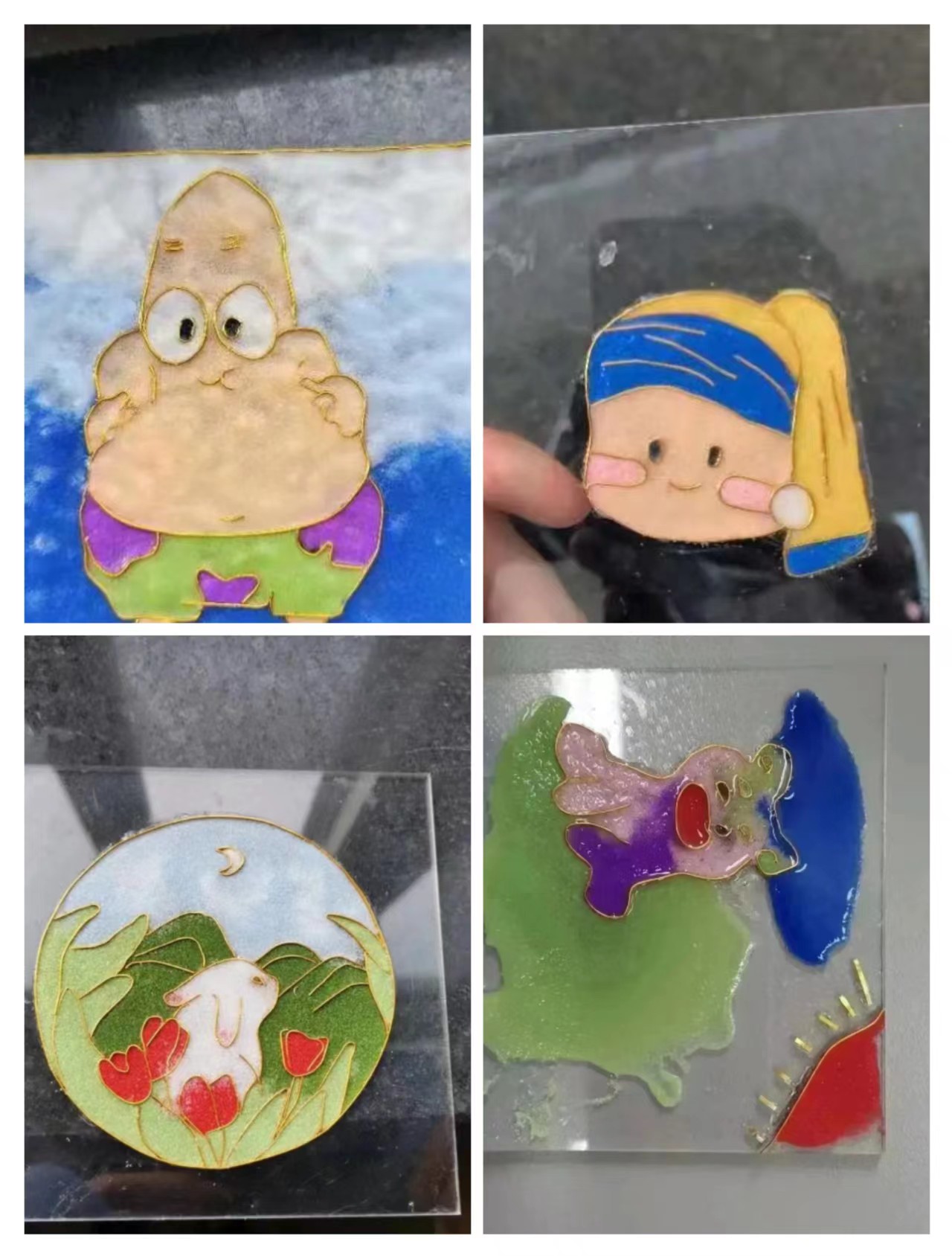 在同学们的耐心制作以及社员的细心指导之下,一幅幅掐丝珐琅画顺利完成。