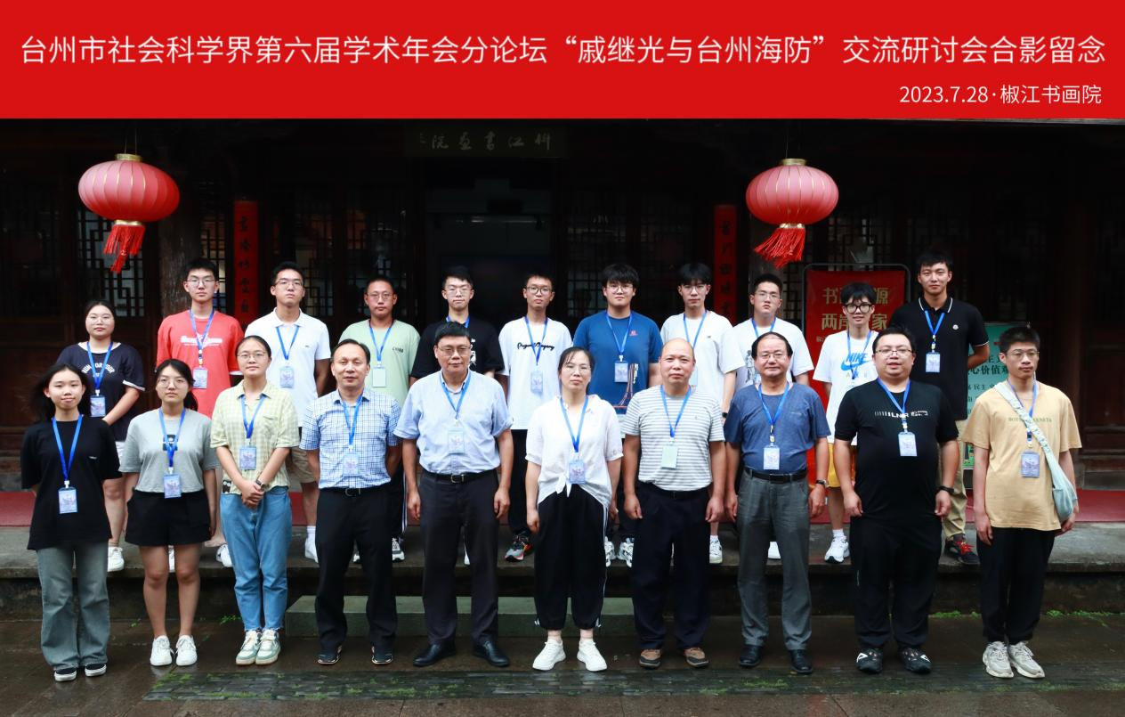 2023年7月28日,台州市社会科学界第六届学术年会戚继光研究会分论坛暨“戚继光与台州海防历史文化”交流研讨会在椒江书画院举行。此次分论坛由台州市社科联主办,椒江区社科联、台州市戚继光研究会、杭州师范大学博晖文史社共同承办,椒江区书画院、椒江区戚继光纪念馆、台州市洪家中学鸿洲史学社参与协办。台州市戚继光研究会会长李欠梅,椒江区社科联副主席赵赛赛,台州市戚继光研究会副会长兼秘书长林汝志,台州市戚继光研究会副会长孙平华,台州市戚继光研究会理事、椒江区政协文史专员王康艺等出席会议。