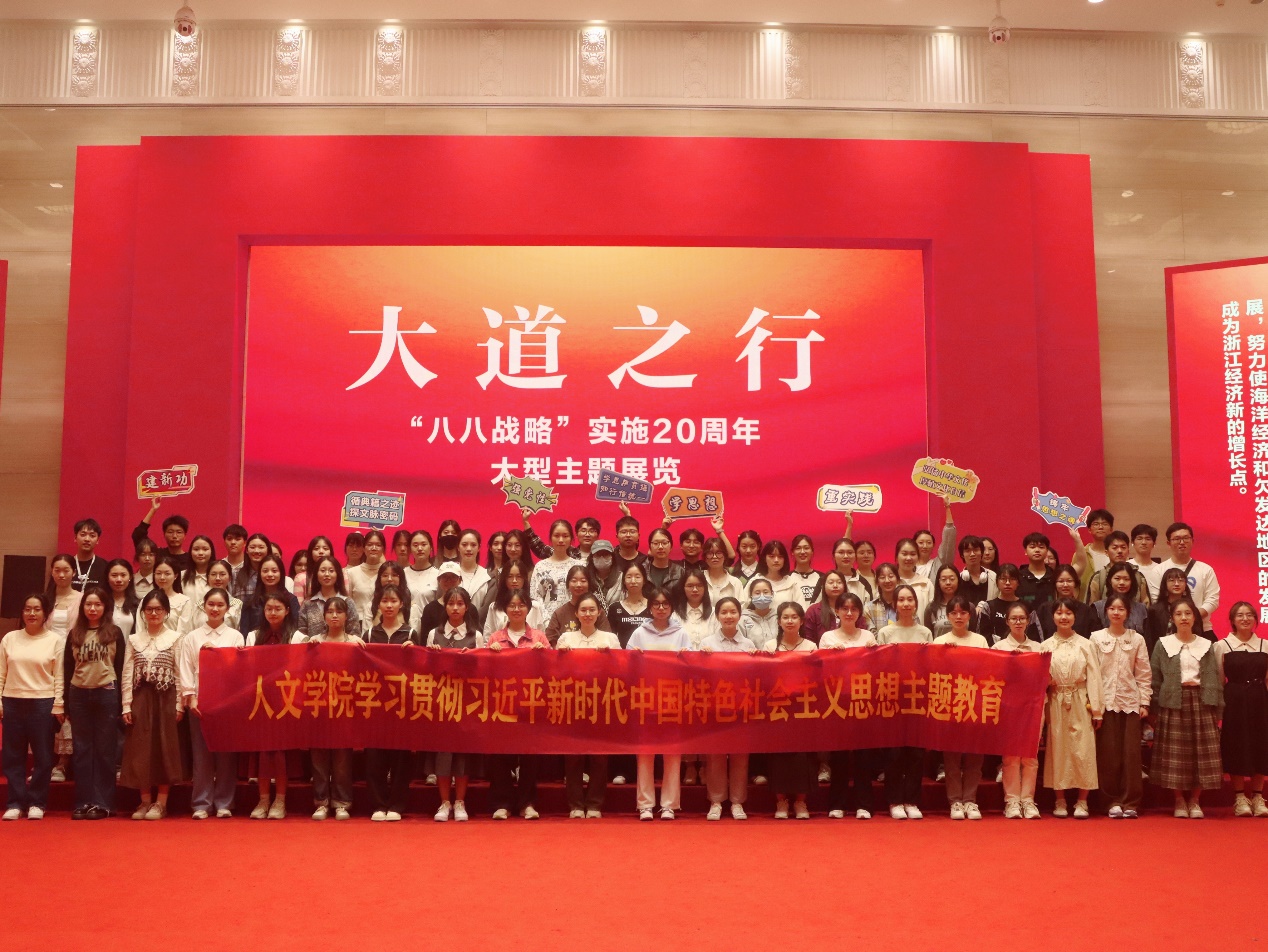 大道之行,壮阔无垠。为进一步学习贯彻习近平总书记考察浙江重要讲话精神,扎实做好主题教育工作,10月28日下午,av视频 组织师生在浙江展览馆参观了“大道之行——‘八八战略’实施20周年”大型主题展览,百余名人文学子参观了此次展览。