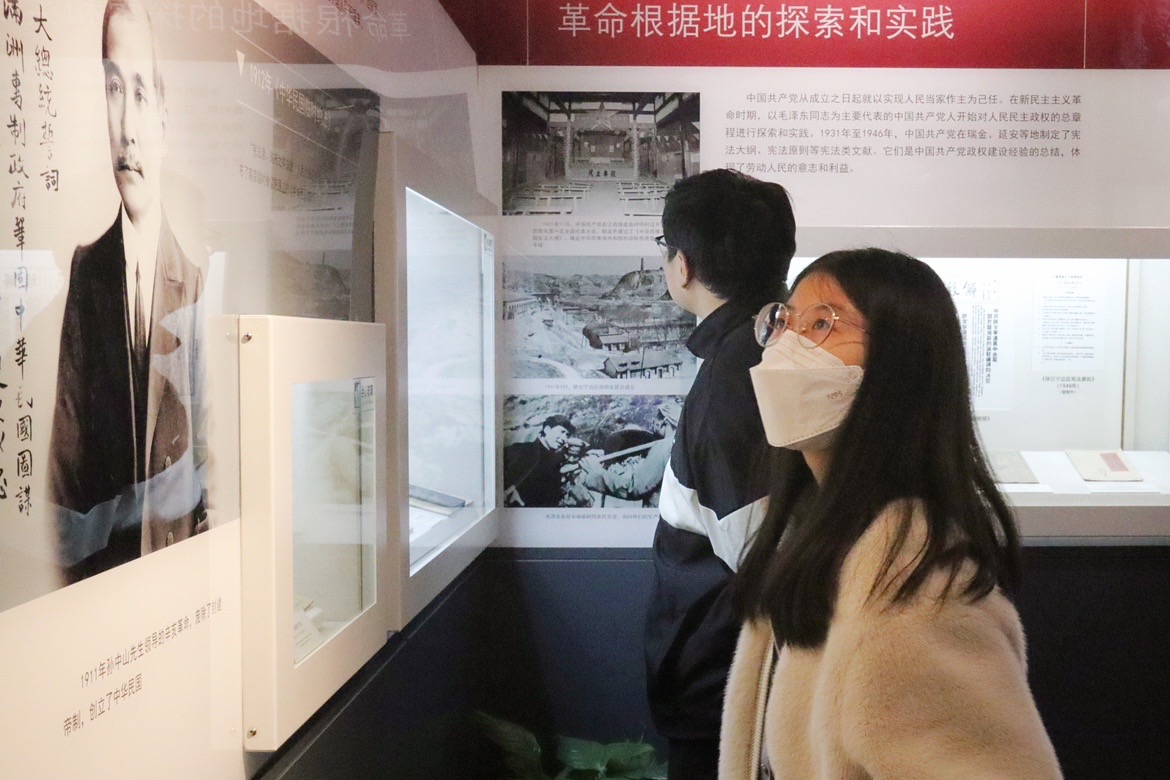 寻根宪法历史,厚植法治信仰。12月4日是我国第十个国家宪法日,本次活动的主题是“以习近平法治思想为指引,坚定不移走中国特色社会主义法治道路”。为了更好学习贯彻法治思想,12月6日下午,av视频 组织师生参观了坐落于北山街84号大院的“五四宪法”历史资料陈列馆,学习、感悟、传承红色历史。