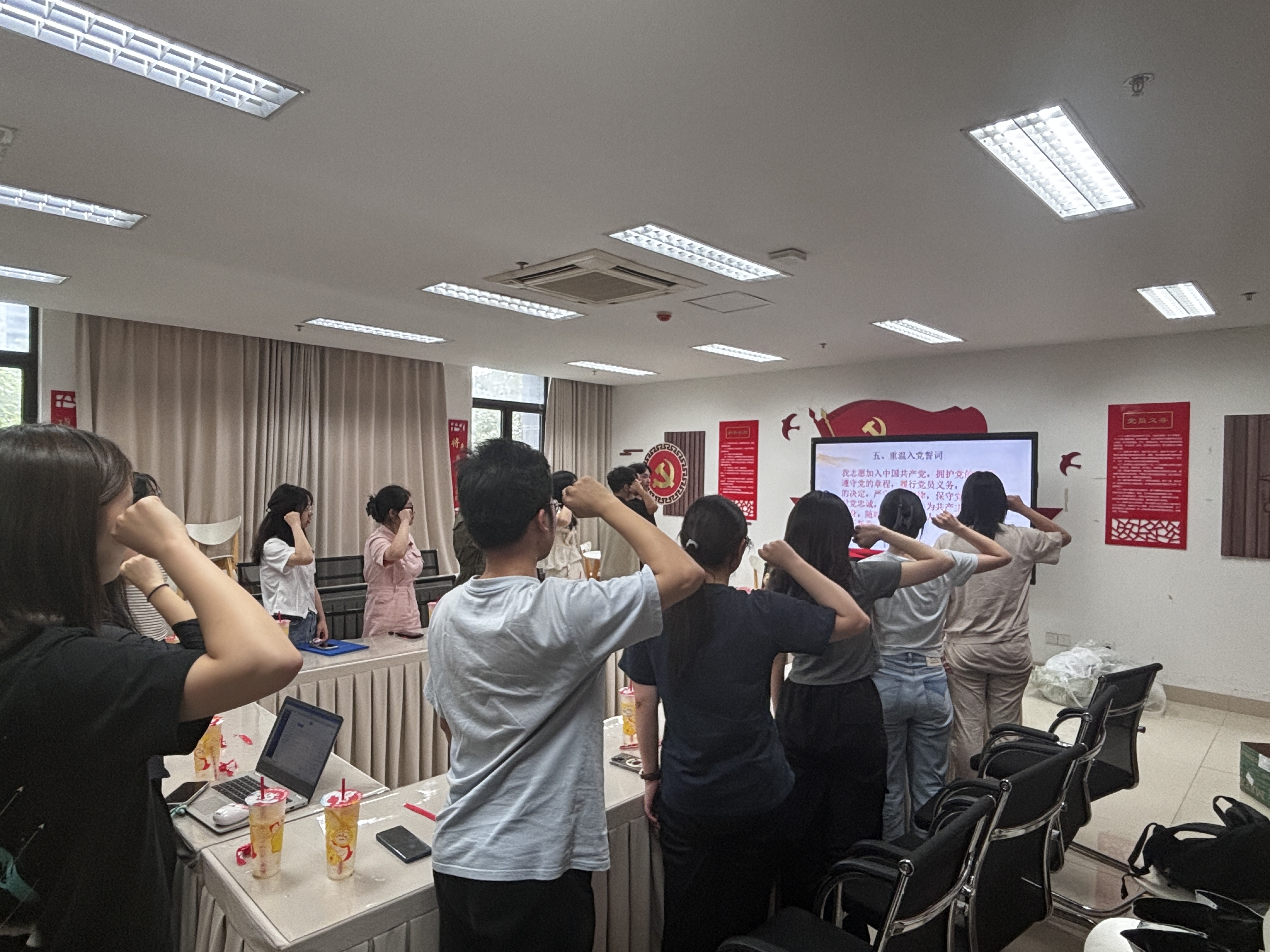 最后,在鲜红的党旗下,陈晓玲带领全体成员重温入党誓词:“我志愿加入中国共产党,拥护党的纲领、遵守党的章程……”。在场的同志们握紧右拳,誓言铿锵,一起重忆入党初心,再次接受党性洗礼,更加坚定永远跟党走的信念。