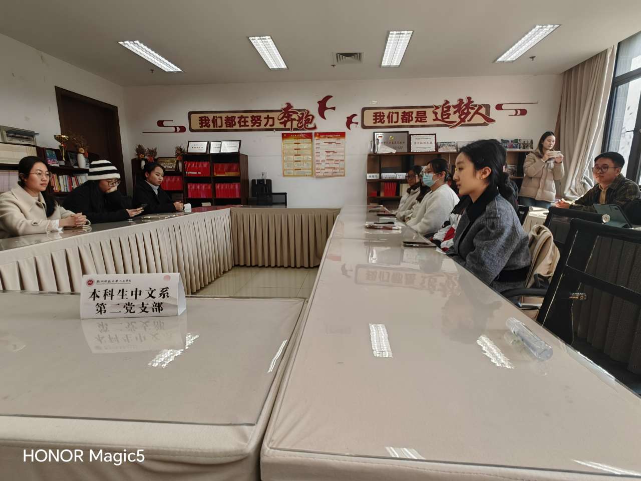 2024年11月27日下午,av视频 本科生中文系第二党支部在恕园23号楼316党员之家举行了一场主题为“烛照初心燃明灯,行为世范铸师魂”的党日活动。此次活动旨在深入贯彻党的教育方针,激励支部党员进一步弘扬和践行教育家精神,增强青年师范生党员的责任感与使命感,提升教育教学质量,为培养德智体美劳全面发展的社会主义建设者和接班人贡献力量。