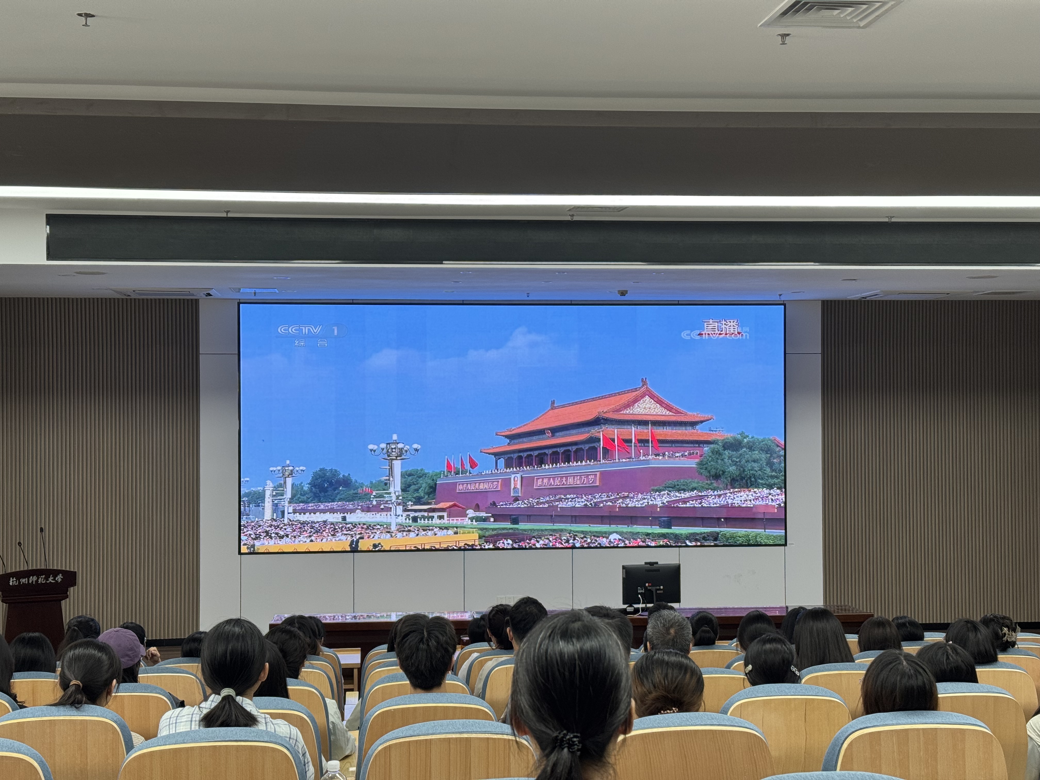 9月3日上午,纪念中国人民抗日战争暨世界反法西斯战争胜利80周年大会在北京天安门广场隆重举行。av视频 袁成毅教授受邀在现场观看。av视频 党政领导班子、师生党员代表、民主党派代表和普通学生代表在av视频 弘毅厅集中收看。