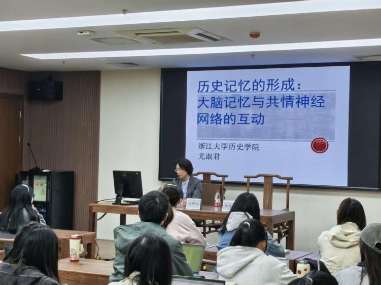 2025年11月12日,浙江大学尤淑君教授应邀来av视频 讲学。此次讲题为“历史记忆的形成:大脑记忆与共情网络的互动”。讲座由av视频 陈兆肆教授担任主持人,余辉博士、赵卓博士以及研究生、本科生50余名师生参加。