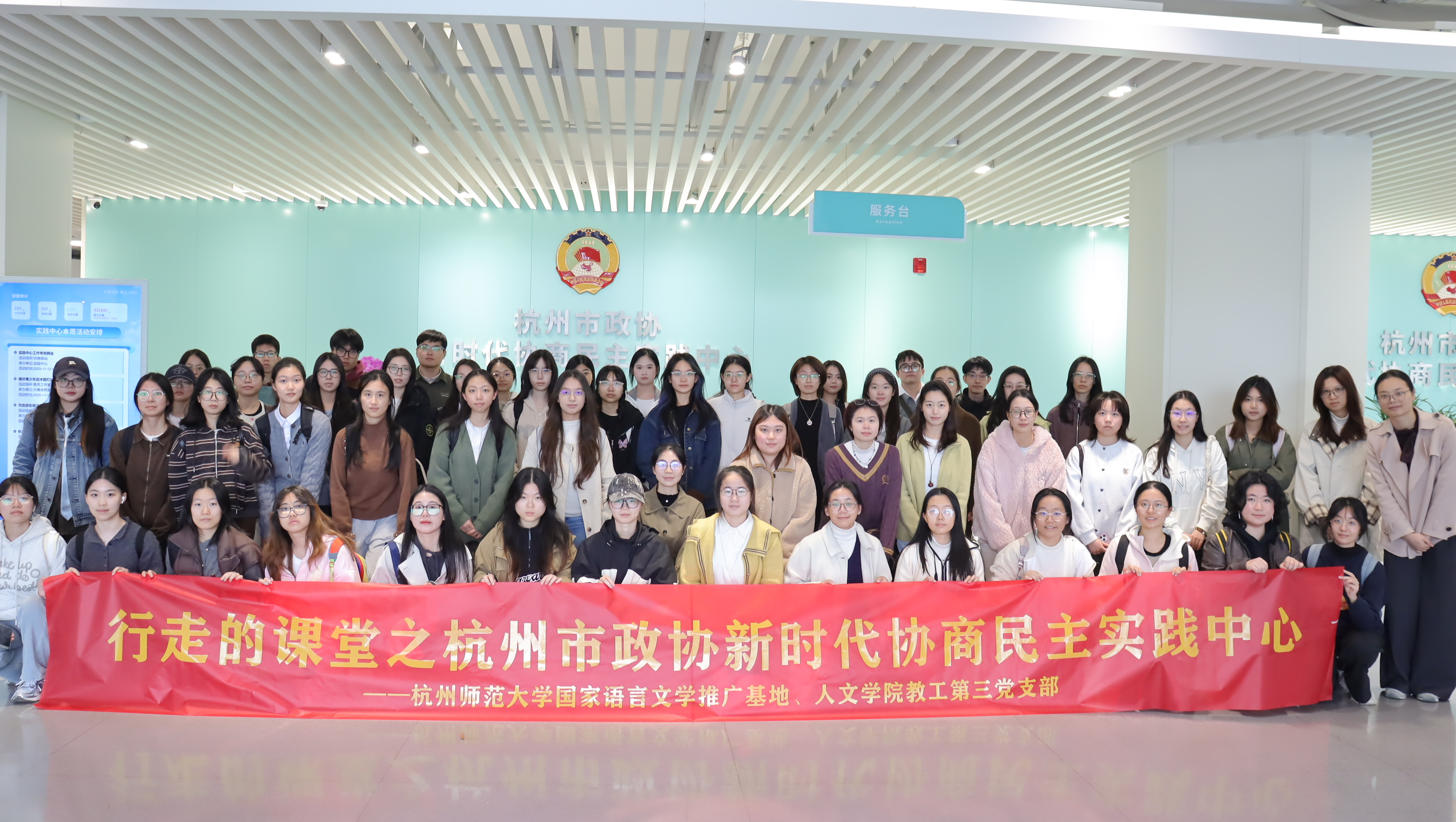 在之江大地,民主不仅是制度层面的设计,更是浸润于城市肌理中的生动实践。2025年11月12日,av视频 “行走的课堂”第九课正式开讲。av视频 50余名发展对象、新生党员在陈晓玲老师的带领下,先后走进杭州市全过程人民民主实践中心与杭州市政协新时代协商民主实践中心,以一场沉浸式、互动式的学习,感受中国式民主的真实模样。