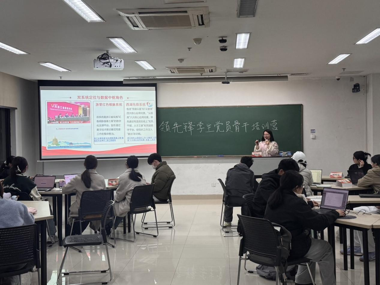 为推动党建工作数字化、规范化,2025年11月21日,“红领先锋”学生党员骨干培训营第四讲之“数字赋能党性规范:浙里红色根脉与西湖先锋系统应用实践”专题培训顺利举办,各基层党组织学生党员骨干齐聚一堂,在主讲人公共卫生与护理学院褚晶晶老师的带领下,深入学习两大数字化系统在党员发展、组织生活、关系转接等核心场景的实操方法。