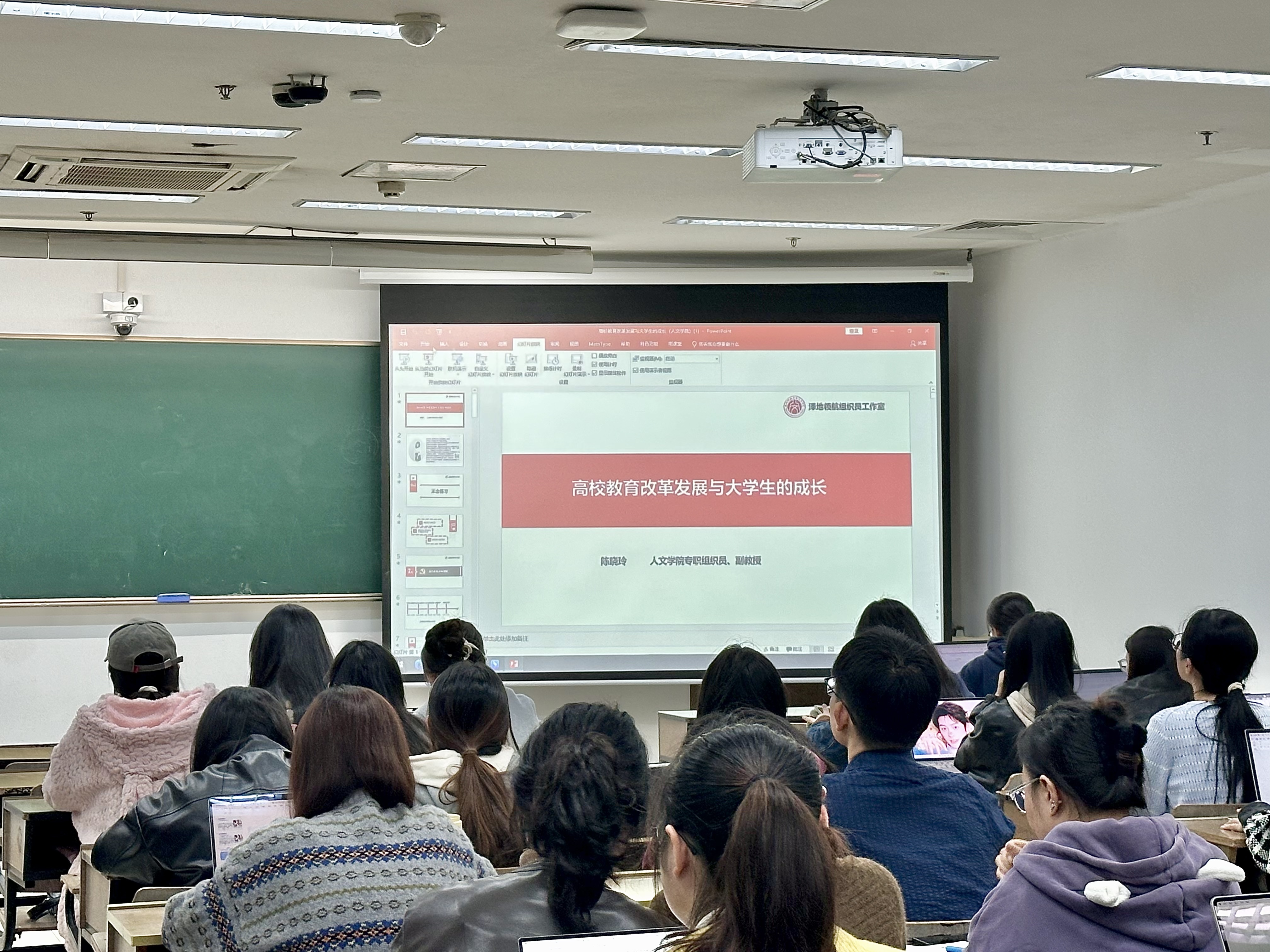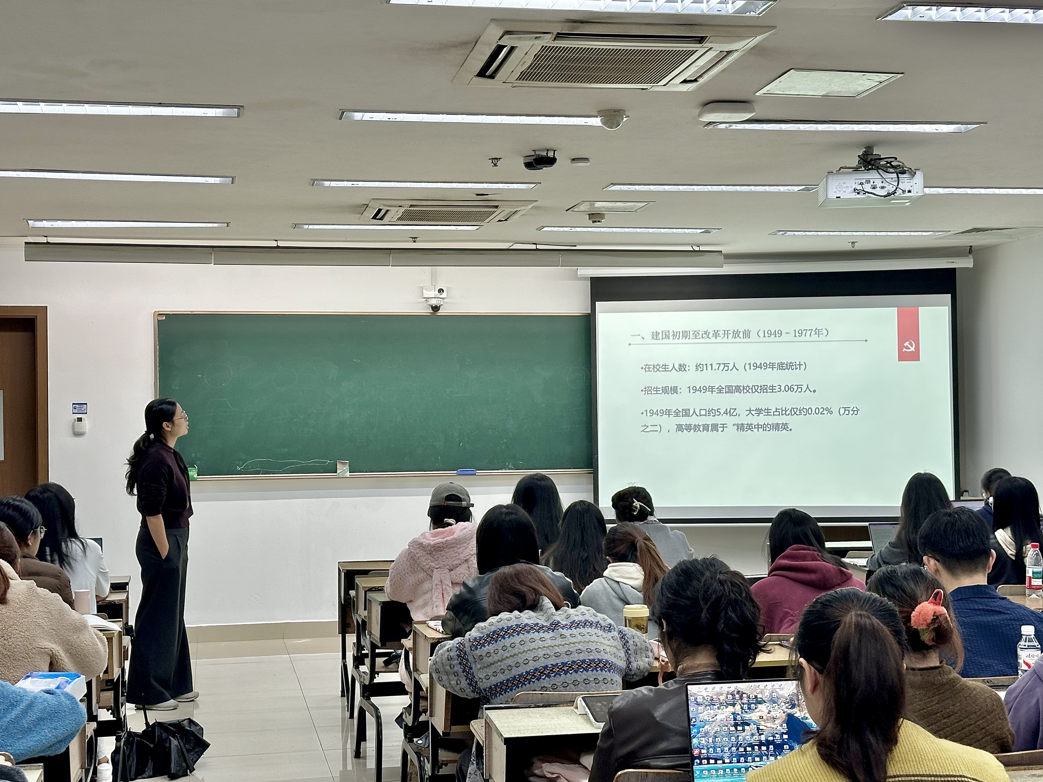 11月9日晚,陈晓玲老师在恕园10-102教室面向av视频 和阿里巴巴商学院全体发展对象,展开《高校教育改革发展与大学生的成长》的党课培训。党课伊始,陈老师向同学们提出“加入中国共产党对于大学生的意义到底是什么?”这一问题,引发了同学们对于自身入党初衷和上党课意义的思考。经过简短的师生互动,陈老师结合建国以来高等教育的改革发展过程和大学毛入学率提高等现象,引导同学们思考自己作为在校大学生能做些什么,如何使投入到大学的成本效益最大化。接着陈老师围绕“在校大学生如何提升能力”这一问题,激励全体发展对象提高政治思想觉悟,勇于自我反省、自我革新、自我提高,在学习和生活中发挥先锋模范作用,以实际行动争取早日成为一名光荣的共产党员,在新时代的伟大征程中勇立潮头。
